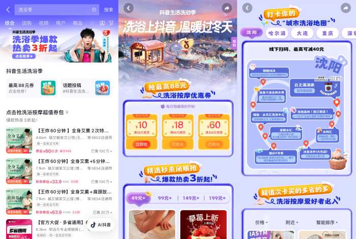 抖音生活服务 “洗浴季”团购3折起,联合20000余商家助燃冬日“暖经济”